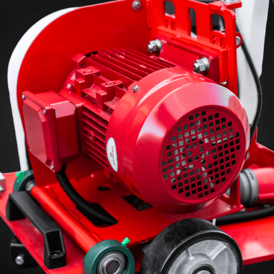 Frezarka wyposażona jest w trójfazowy silnik 4 kW | 400 V, który bez trudu radzi sobie zarówno z miękkimi jastrychami, jak i twardym betonem. Maksymalna średnica frezu to 130 mm, a otwór mocujący – 22,2 mm.