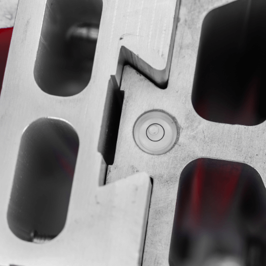 - Wbudowane poziomnice – na dwóch przylegających powierzchniach, co pozwala na precyzyjne wypoziomowanie statywu.