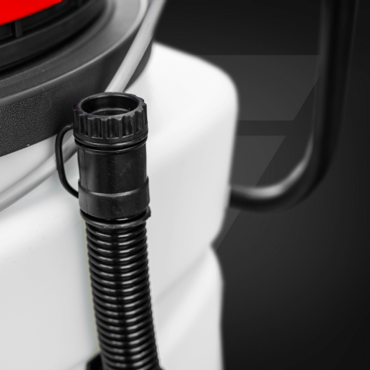Zamiast podnoszenia i przechylania zbiornika wystarczy otworzyć zawór spustowy. Szlam, woda i zanieczyszczenia wypływają swobodnie, oszczędzając czas i siły operatora.
