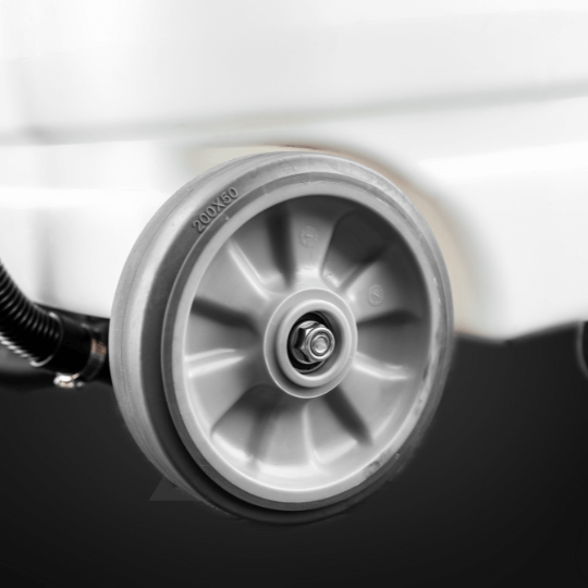 Dwa duże koła nośne i dwa koła skrętne zapewniają zwrotność oraz stabilność. Odkurzacz można wygodnie prowadzić nawet przy masie zwiększonej o 90 litrów cieczy.