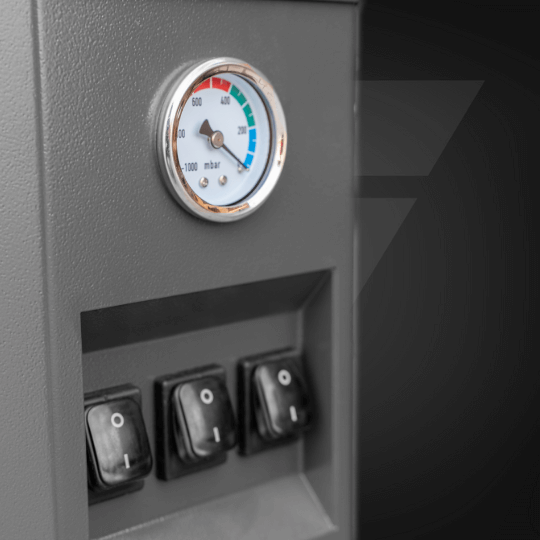 Gdy wskazanie rośnie, operator natychmiast wie, że filtr wymaga regeneracji. Dzięki temu odkurzacz pracuje zawsze z pełną wydajnością, bez spadków przepływu.