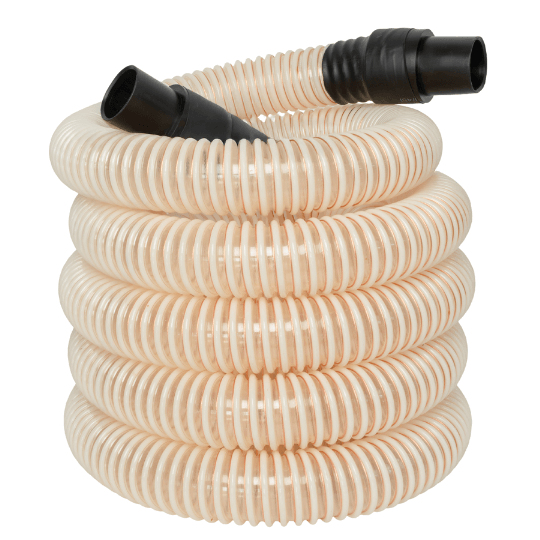 Stalowy wózek z dużymi kołami ułatwia przemieszczanie urządzenia, a w zestawie znajdują się dwa węże 7 m: standardowy i antystatyczny 50 mm, oraz ssawka do pracy na sucho.