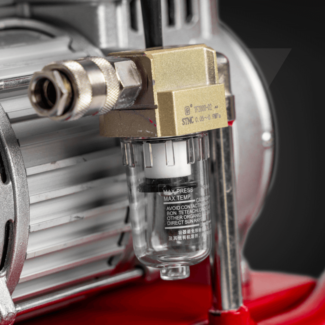 Skuteczny filtr powietrza zabezpiecza pompę przed zanieczyszczeniami, wydłużając żywotność urządzenia.