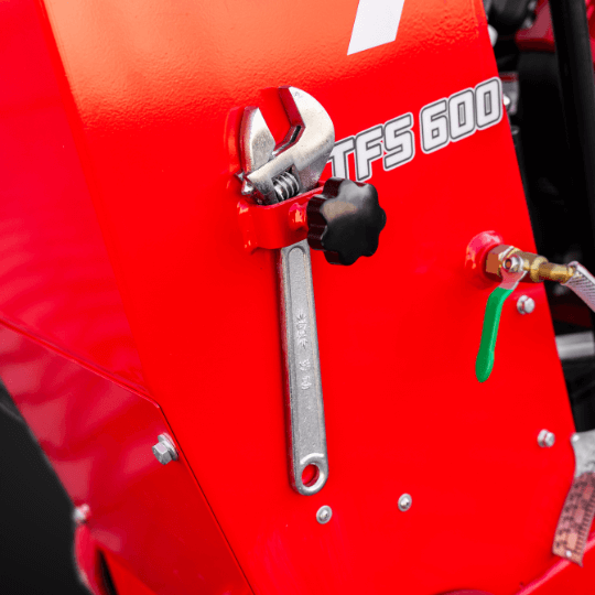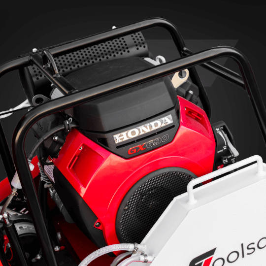 Toolsa TFS 600 Drive to duża, profesjonalna przecinarka samojezdna do intensywnych prac drogowych i posadzkarskich. Silnik Honda GX 690 (25 KM) w połączeniu z własnym napędem jazdy 24 V daje pełną kontrolę nad tempem pracy i stałą, wysoką wydajność. Maszyna obsługuje tarczę o średnicy do 600 mm i umożliwia cięcie na głębokość do 220 mm, a zbiornik wody 37 l wspiera dłuższą pracę bez częstych przerw.