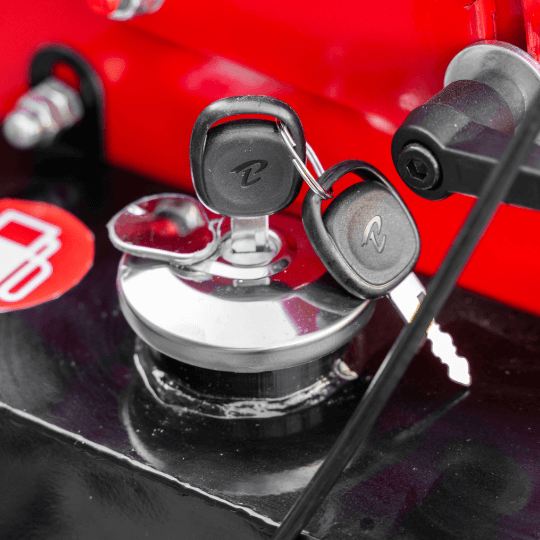 Metalowy korek z zamkiem zabezpiecza zbiornik paliwa przed dostępem osób niepowołanych.