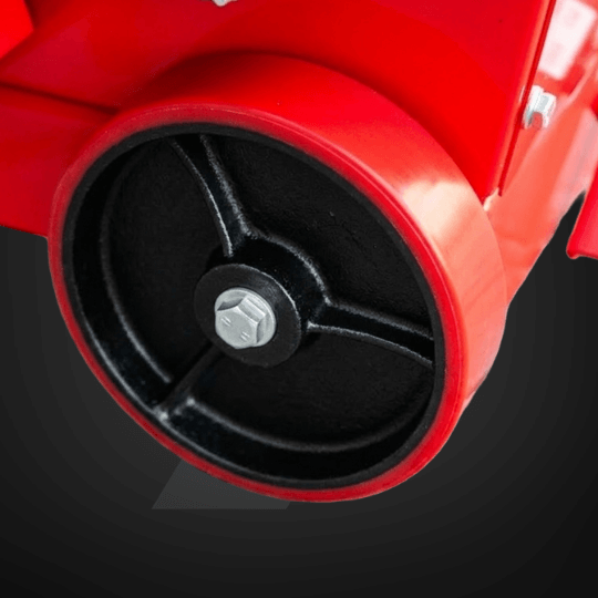 Solidne koła ułatwiają transport maszyny oraz stabilne prowadzenie na nierównym podłożu.