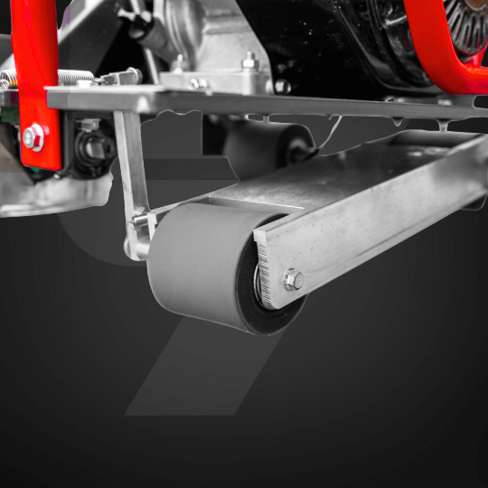 Rolki prowadzące zapewniają płynne przesuwanie maszyny i zwiększają precyzję.