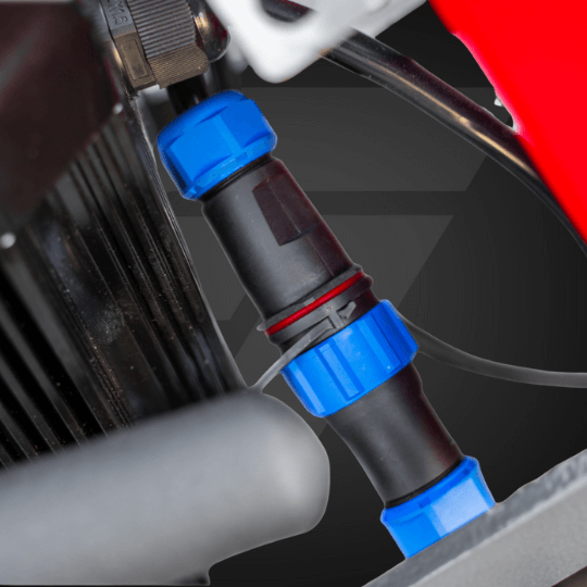Szybkozłącze z uszczelnieniem chroni instalację elektryczną przed wilgocią i ułatwia serwisowanie oraz demontaż.