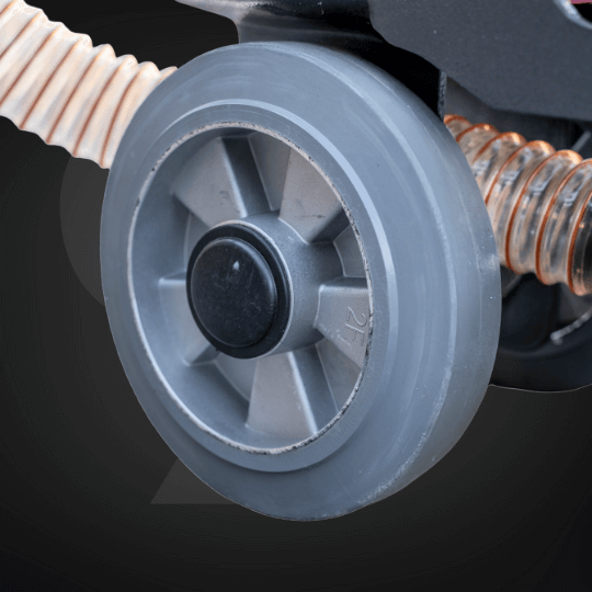 Duże, wytrzymałe koła umożliwiają łatwe przetaczanie szlifierki nawet po nierównym podłożu.