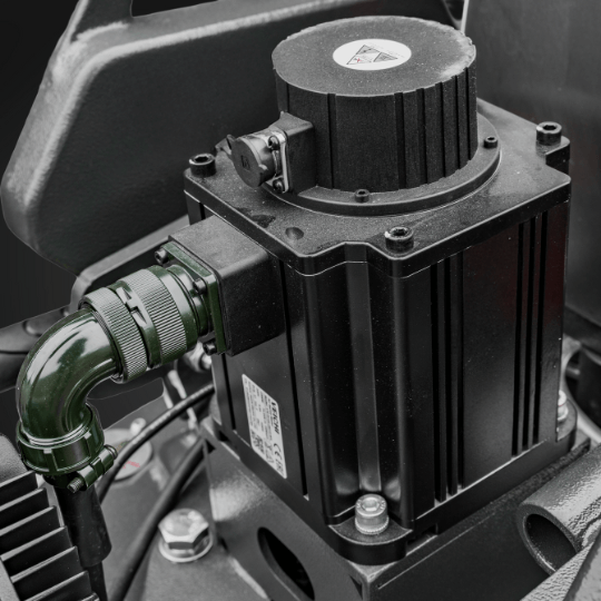 Nowoczesny silnik wielopolowy z magnesami trwałymi zapewnia 14,5 kN momentu obrotowego dostępnego od zera. To technologia znana z samochodów elektrycznych – maksymalna siła bez potrzeby wysokiej mocy znamionowej.