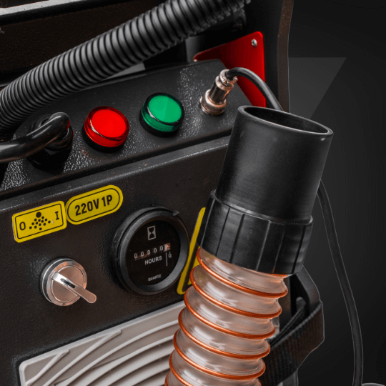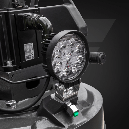 Falownik z regulacją obrotów, zmiana kierunku prawo/lewo, światło LED, wyłącznik awaryjny i licznik motogodzin pozwalają w pełni kontrolować pracę i serwis maszyny.