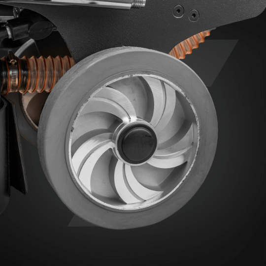 Szerokie koła transportowe z twardą gumą ułatwiają przemieszczanie urządzenia nawet po nierównym terenie.
