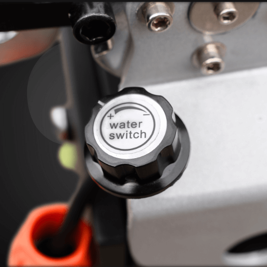 Precyzyjna regulacja ilości wody, podawanej podczas szlifowania na mokro – w zasięgu ręki operatora.