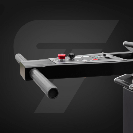 Przycisk oświetlenia roboczego, umieszczony centralnie pod uchwytem sterującym – umożliwia szybkie włączenie lampy LED w trudnych warunkach oświetleniowych.