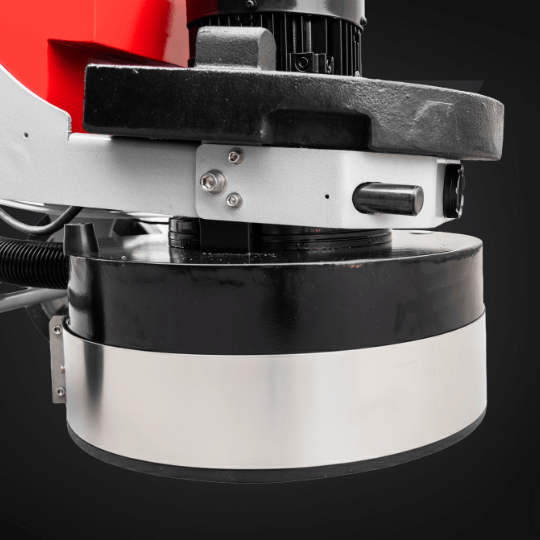 Szlifierka wyposażona jest w silnik 3 kW oraz planetarną przekładnię z trzema satelitami o średnicy 230 mm każda, co zapewnia równomierne i wydajne szlifowanie każdej powierzchni. Dodatkowe obciążenie (30 kg) oraz zbiornik na wodę 30 l umożliwiają pracę zarówno na sucho, jak i na mokro. Urządzenie posiada regulację kierunku obrotów i precyzyjny panel sterujący z wyświetlaczem parametrów pracy.