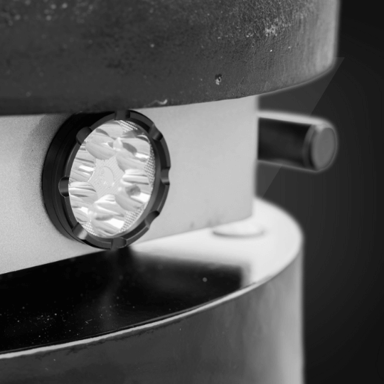 Niskoprofilowe oświetlenie LED pozwala dostrzec nierówności powierzchni podczas szlifowania.