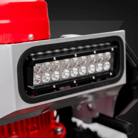 Przycisk oświetlenia roboczego, umieszczony centralnie pod uchwytem sterującym – umożliwia szybkie włączenie lampy LED w trudnych warunkach oświetleniowych.