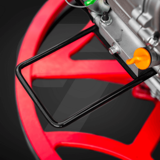 W przeciwieństwie do klasycznych czerwonych klamek, które operatorzy często “blokują”, system odśrodkowy automatycznie wyłącza silnik, gdy maszyna wyrwie się z rąk. Najbezpieczniejsze rozwiązanie na rynku.
